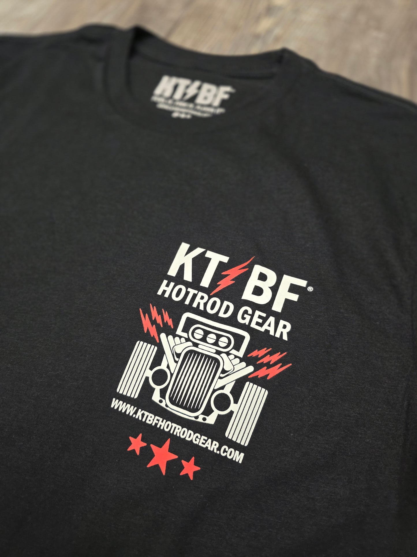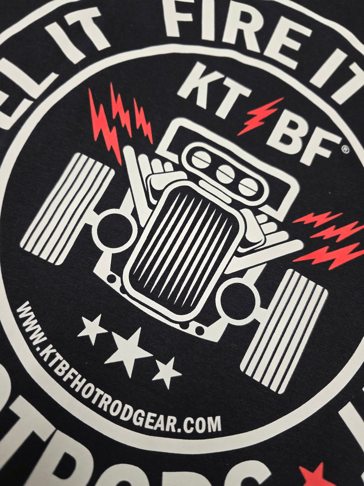 The FFF® "RetroRod" design is a two-sided design featuring the Fuel It, Fire It, Floor It® mark, and hot rod themed design and lightning bolts! Using premium ink technology, it is a tagless fashion fit 60% cotton 40% polyester garment. This lightweight t-shirt garment and design is exceptionally smooth to the touch, comfortable, and tight knit, making it the perfect everyday wearing tee for the everyday hot rodder!